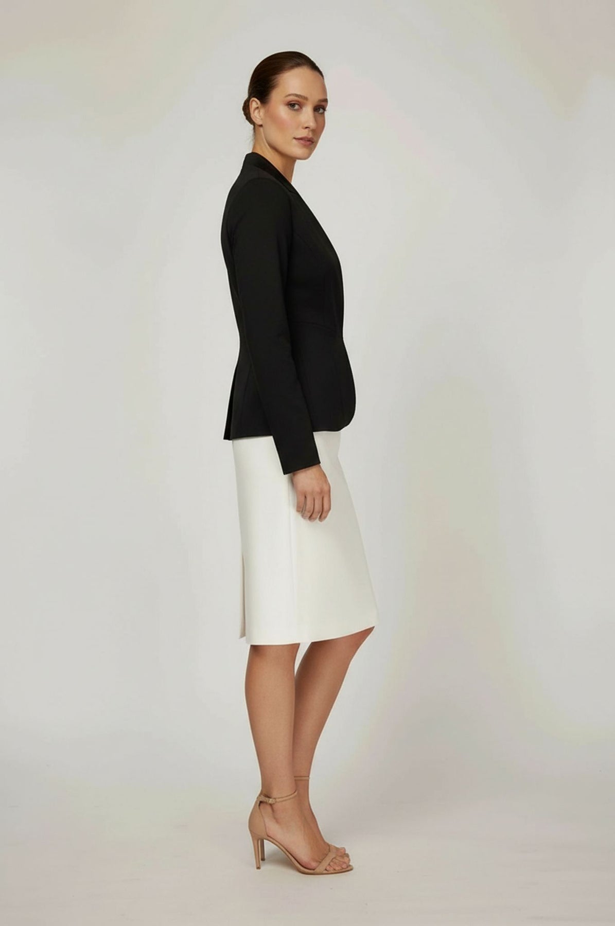 A Jacket that looks like a tailored blazer, but feels like your most comfortable sweater. Pair with jeans on the weekend or with the Chelsea Skirt for a power look. Note the top-stitching details along the edges, which add just a hit of designer edge.
