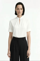 The Irene Blouse combines polished style with all-day comfort. Made from 96% recycled polyester and 4% Lycra, this fabric provides stretch, durability, and easy care. The keyhole neckline and pearl button add a refined touch, while the short sleeves ensure ease of movement throughout the day.
