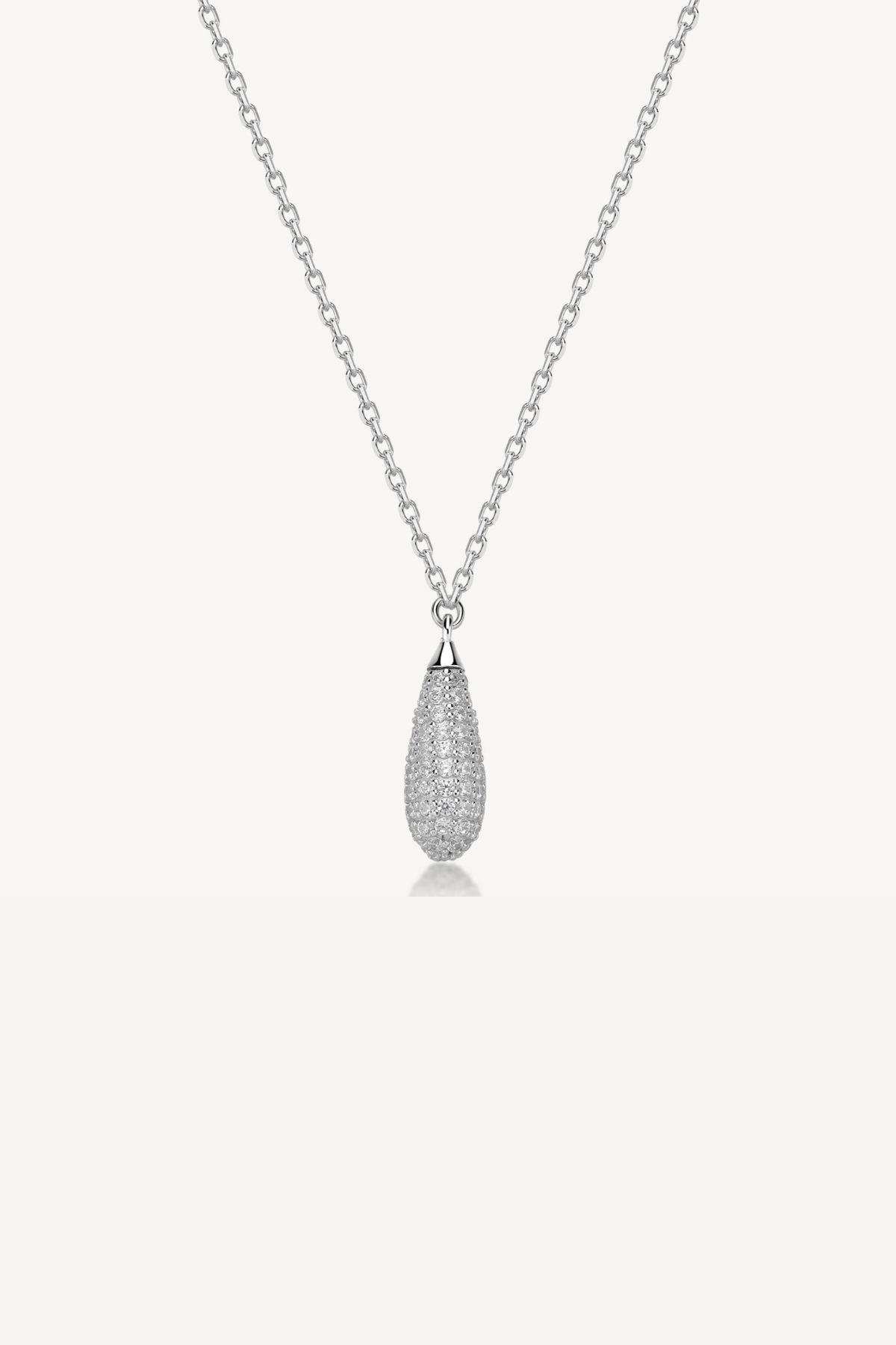 Enhance your style with this rhodium-plated sterling silver necklace and pendant, showcasing clear square and pear cubic zirconia stones. Its sophisticated design and radiant sparkle make it a versatile piece for any occasion, from elegant evenings to everyday luxury.