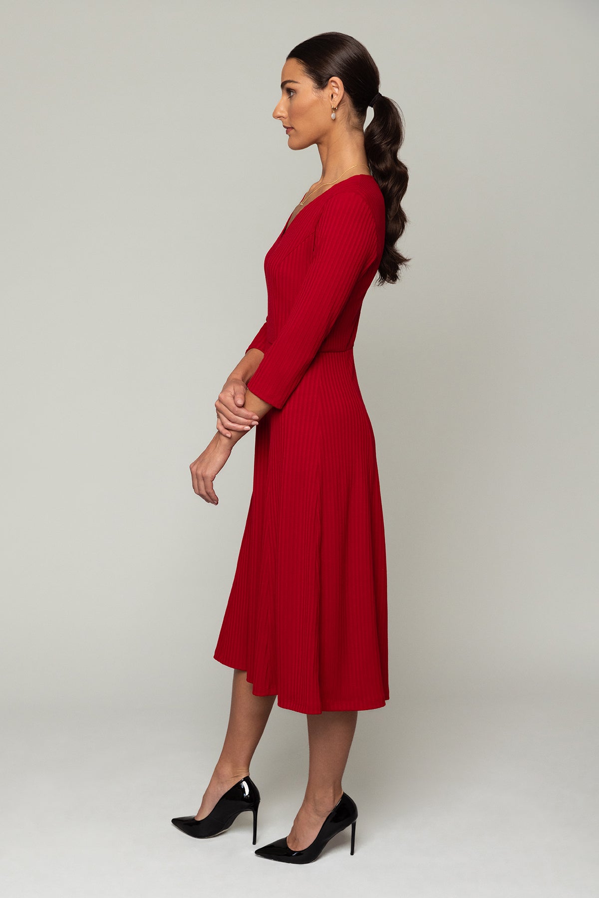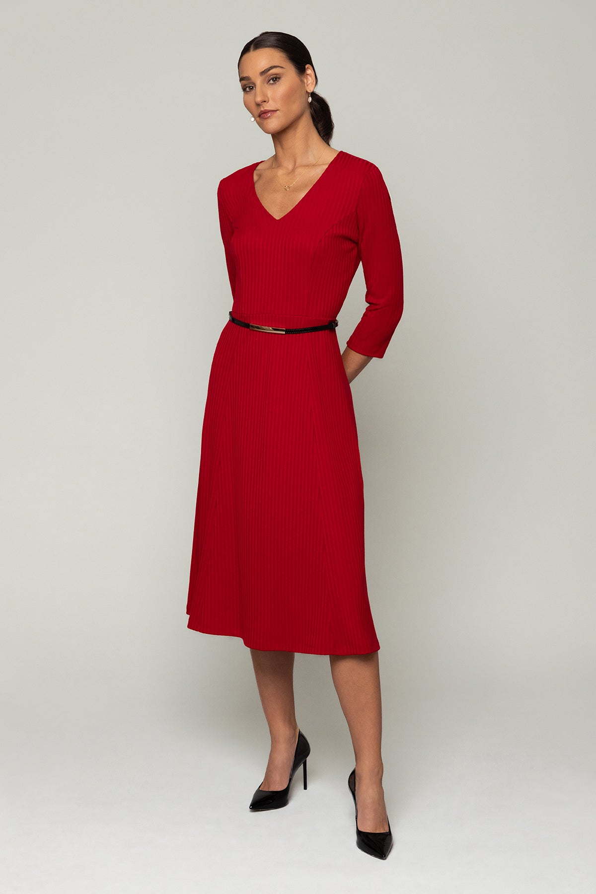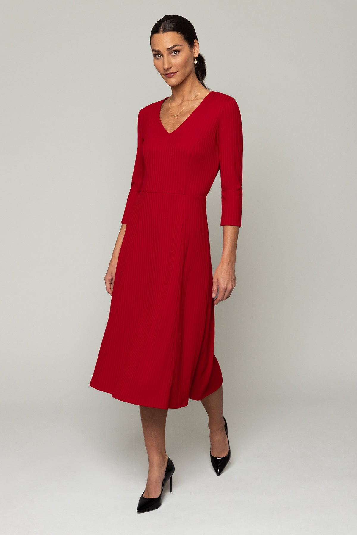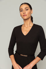 Introducing the Faith Dress, your new cozy knit essential for the fall season. Featuring a flattering V-neck and a longer length for an elongating effect, this dress keeps you stylish and comfortable. The 3/4 sleeves work beautifully with cardigans or jackets and are perfect for showing off your favorite bracelets. Pair it with under-the-knee boots for a chic and effortless look that’s perfect for the cooler months.