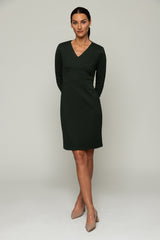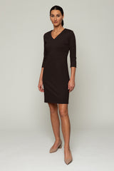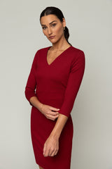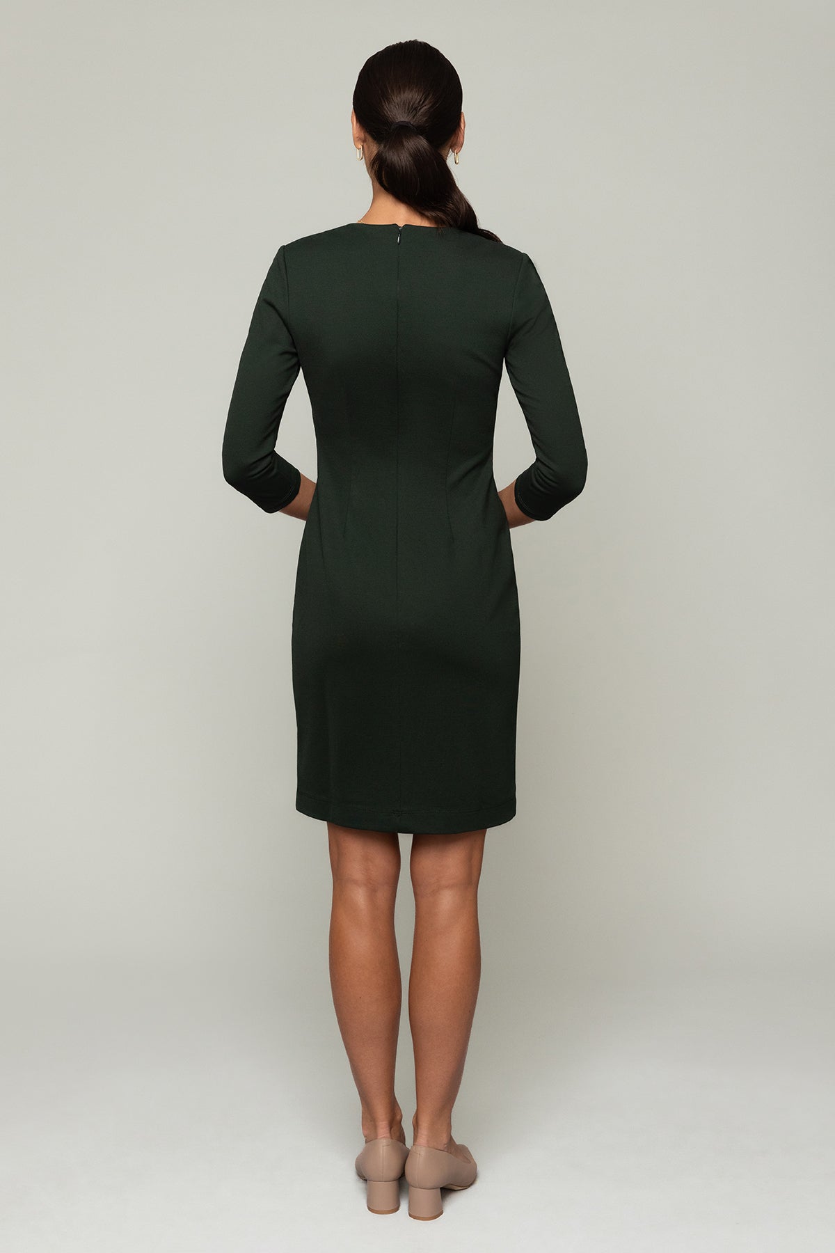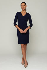 Introducing the Aria Dress, a perfect blend of elegance and comfort. This dress features a flattering V-neck and stylish half sleeves, crafted from soft Ponte de Roma fabric for a luxurious feel. The standout feature is our signature seam details at the front waist, adding a touch of sophistication to the design.