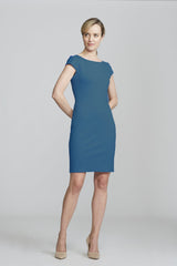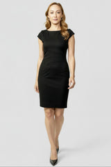 A sleek, stretchy ponte dress in a classic cap sleeve silhouette, it's both comfortable and polished. Featuring a scoop neck, flattering stitching details on the waist, and a great length for work or evening looks.