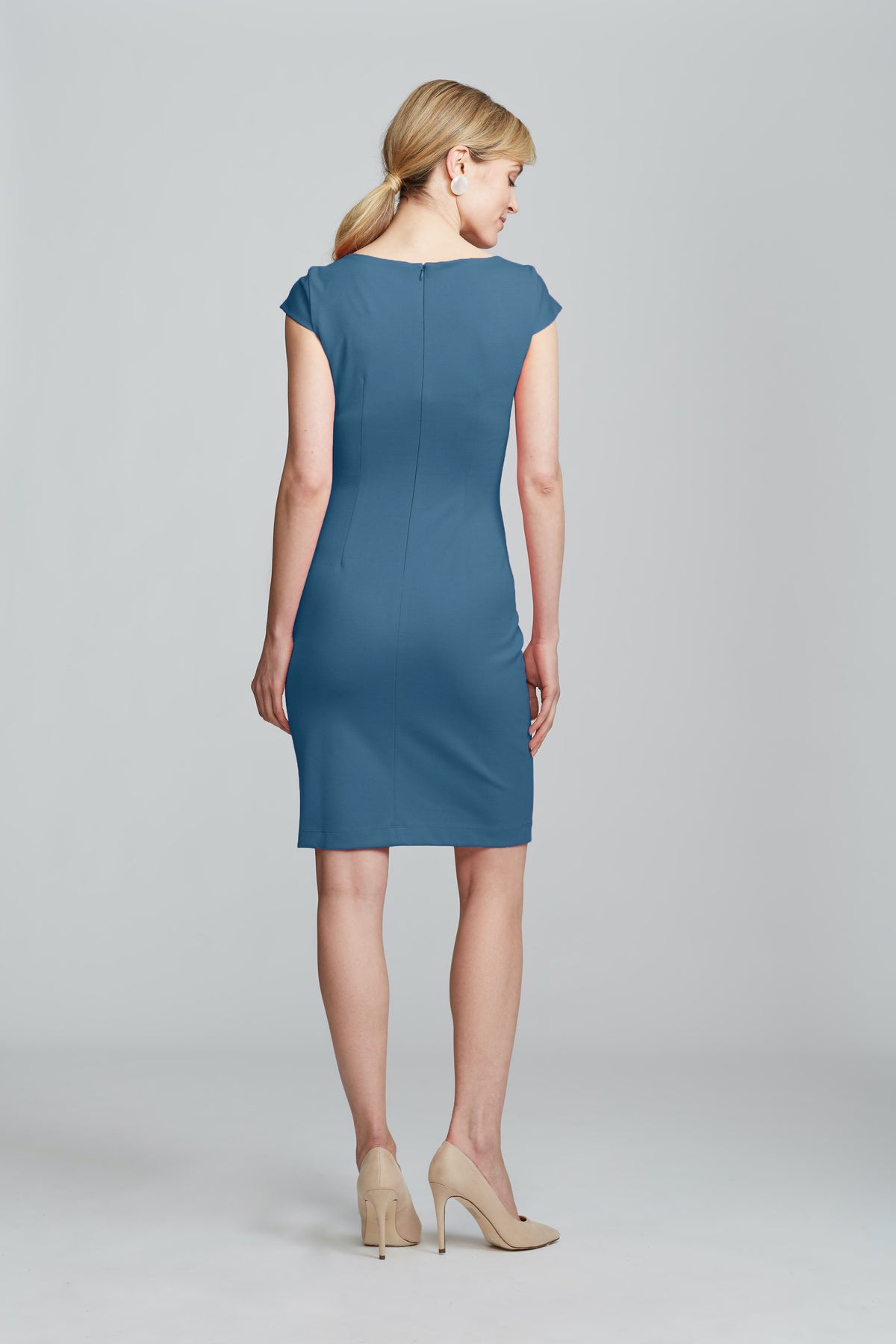 A sleek, stretchy ponte dress in a classic cap sleeve silhouette, it's both comfortable and polished. Featuring a scoop neck, flattering stitching details on the waist, and a great length for work or evening looks.