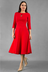 Casares 3/4 Sleeve Swing Dress - Scarlet Red