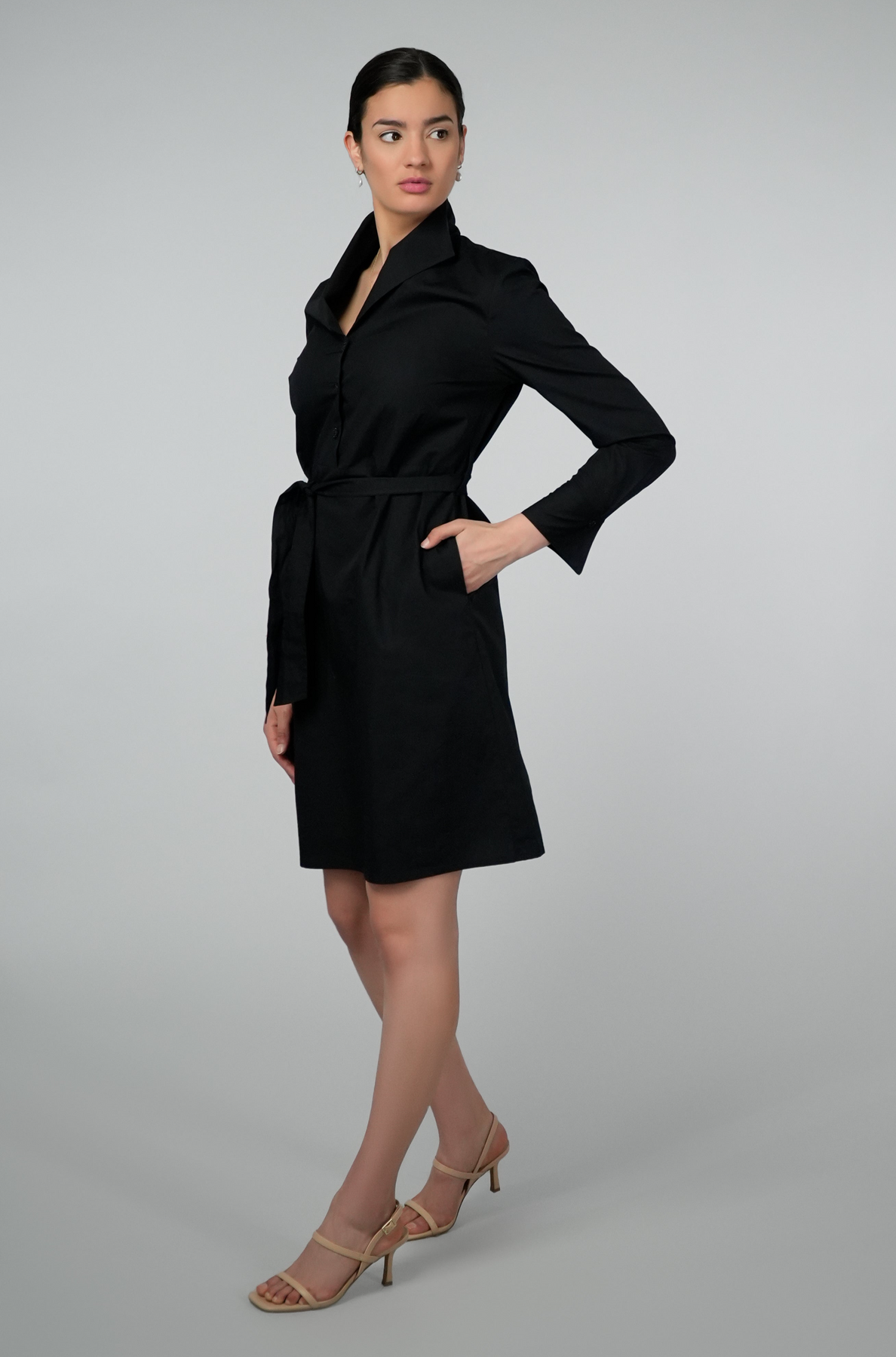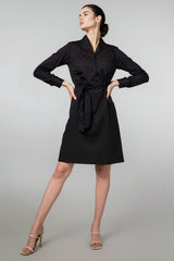 Boasting a unique standing collar and an elegant A-line skirt, this dress offers a blend of sophistication and comfort. Its versatile long sleeves can be effortlessly rolled up or left down, ensuring adaptability for any occasion.