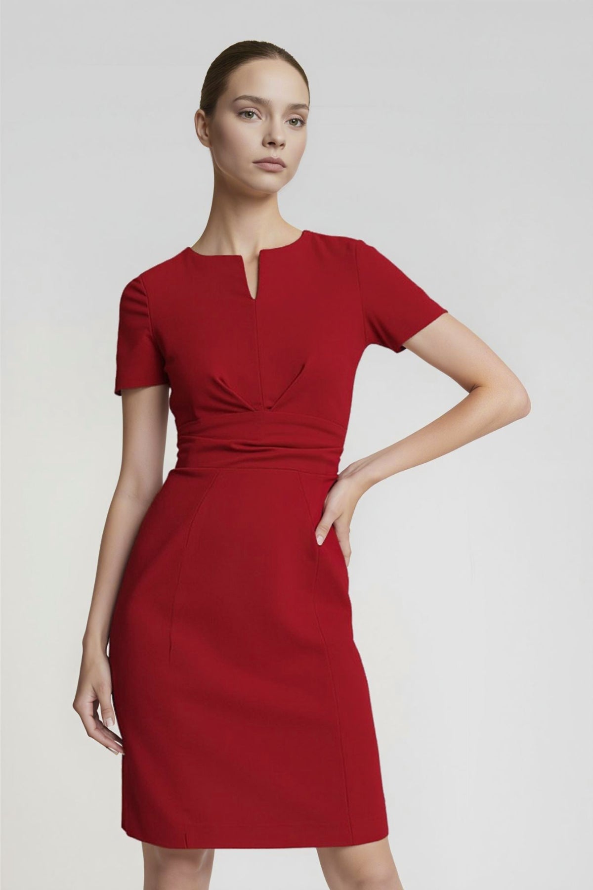 The Andry Dress in Venetian Red is the definition of timeless power dressing. Perfect for the office, this dress balances structure with ease, making it a go-to for important meetings or presentations.